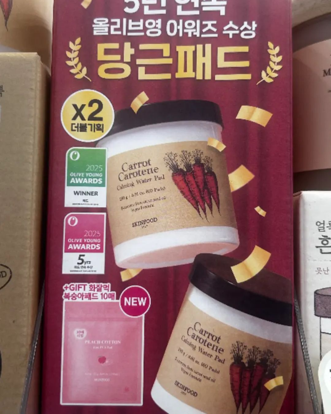 [2025 어워즈/1+1] 스킨푸드 캐롯 카로틴 카밍 워터 패드 어워즈 한정기획 (본품+본품+복숭아패드 10