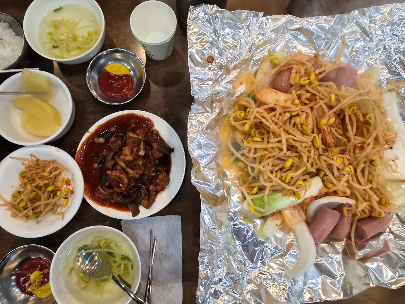 - ✔️ 낙지볶음 + 계란말이 + 베이컨 소세지 = 인생 조합